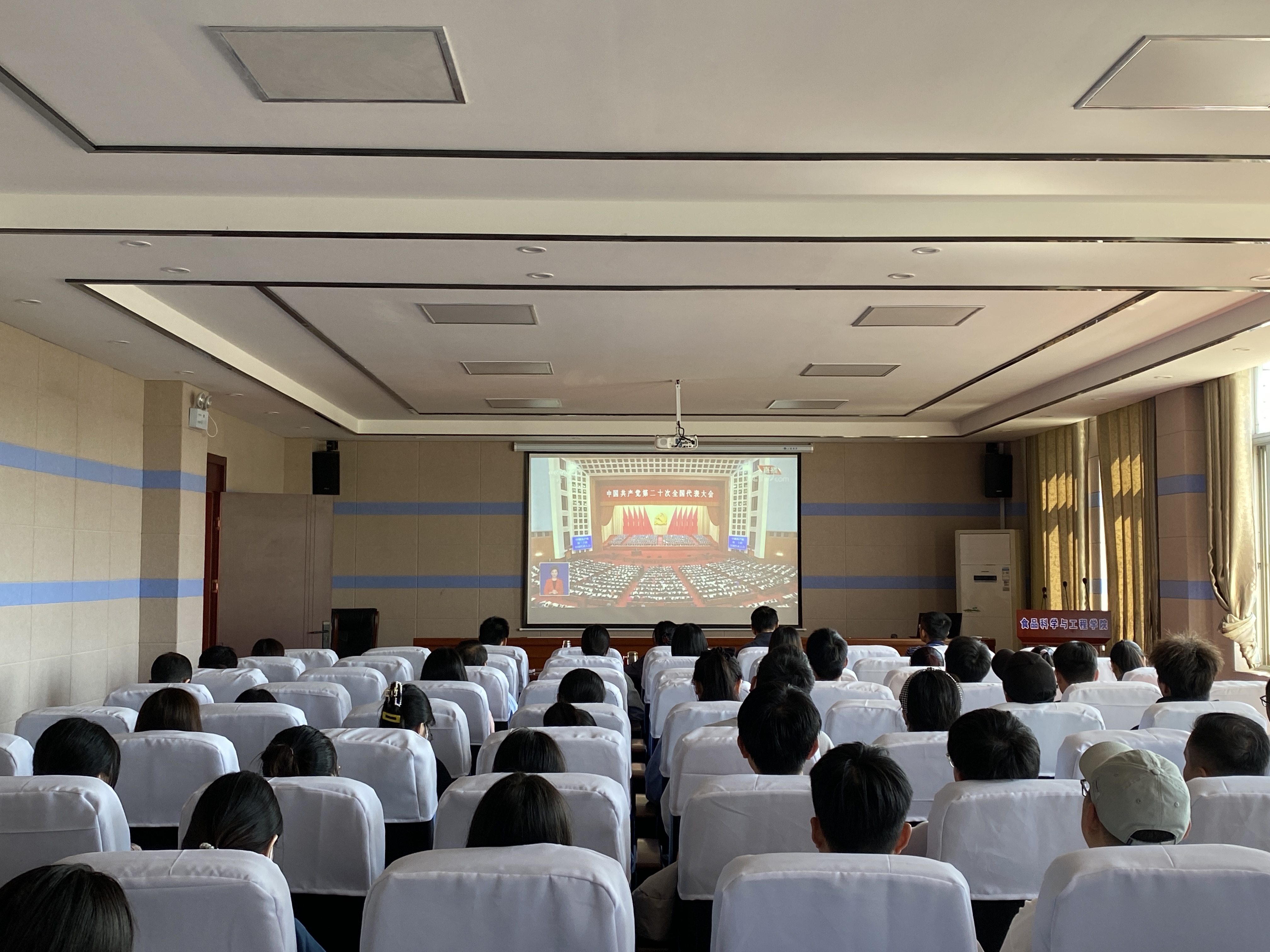 10月16日上午,中国共产党第二十次全国代表大会在北京隆重开幕。中共中央总书记习近平代表第十九届中央委员会向大会作报告,大会主题为“高举中国特色社会主义伟大旗帜,全面贯彻习近平新时代中国特色社会主义思想,弘扬伟大建党精神,自信自强、守正创新,踔厉奋发、勇毅前行,为全面建设社会主义现代化国家、全面推进中华民族伟大复兴而团结奋斗”。公司组织师生党员以线上线下相结合的方式收听收看党的二十大开幕会盛况,学院全体院领导在五楼报告厅集中收看。