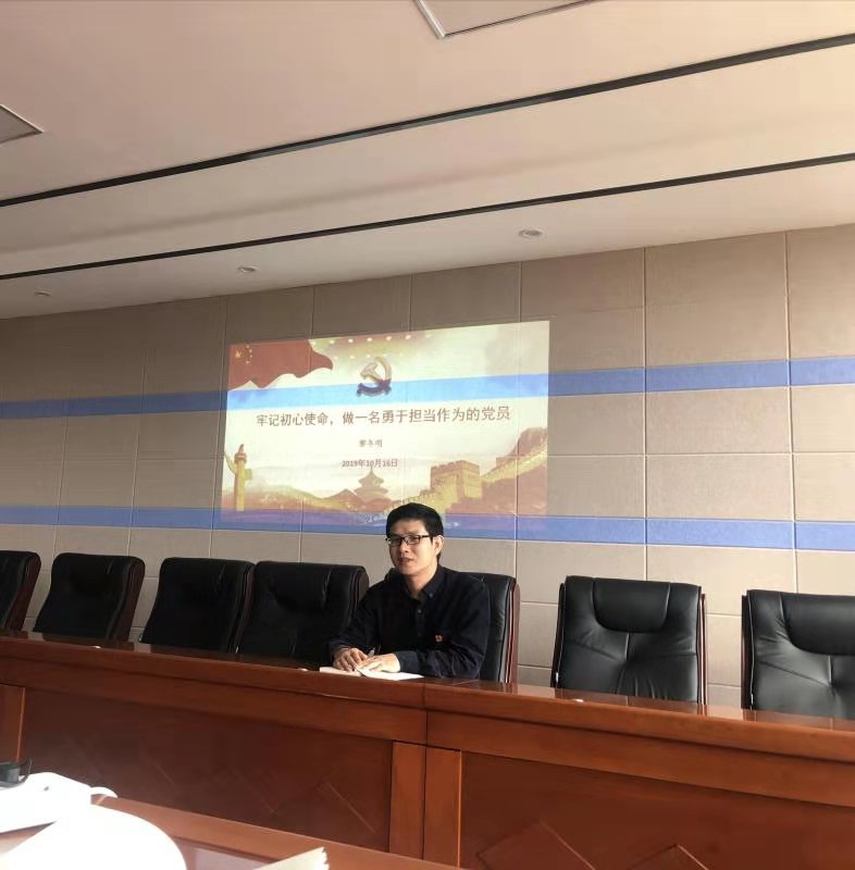 教工党支部书记黎冬明给教工党员上了一堂题为《牢记初心使命,做一名勇于担当作为的党员》的党课。黎书记结合新中国的发展和身边的事迹从“什么是担当作为”,“为什么要担当”和“新时代如何担当”三方面讲解了在新时代我们的党员面对困难要敢于担当,做一名勇于担当作为的党员。