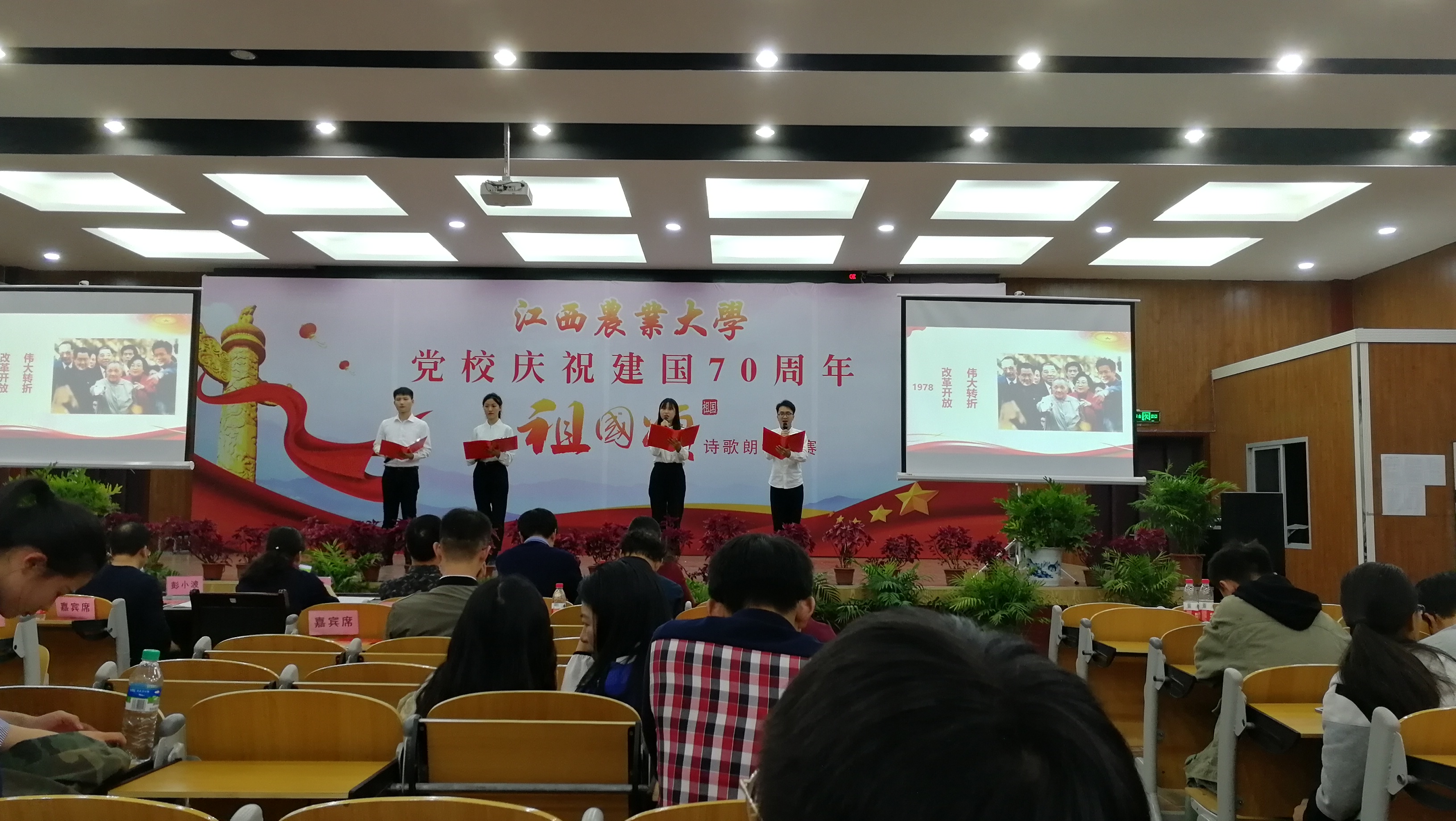 比赛于11月3日在人文院音乐厅进行,公司王钰、肖品鑑、黎志伟、李玉霞四位同学以“祖国颂”为题进行朗诵,深情并茂的歌颂了我国从建国以来的丰功伟业。赛后,四位同学表示“特别荣幸能够参加此次活动,虽然我们都不是专业朗诵选手,期间也磨合了很久,但是能有机会歌颂我们伟大的祖国,我们都觉得特别振奋。此次比赛我们都学习了很多,对未来也更加坚定了。日后,我们一定会继续提升自己,争取早日成为一名合格的党员”。