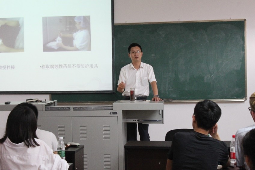 2018年9月18日下午,世界足球官网2018级研究生实验室安全知识培训在江西省天然产物与功能食品重点实验室举行。王文君经理对学校、学院和实验室的安全规章和制度进行了系统讲解,结合具体案例详细介绍了实验室中的危险源和不安全行为以及实验室、办公区消防安全等方面的注意事项,重点强调了危险试剂的使用和废液的处理。此次培训提高了同学们的安全观念,强化了研究生的安全防范和自我保护意识,为实验室的安全管理工作奠定了良好的基础。
