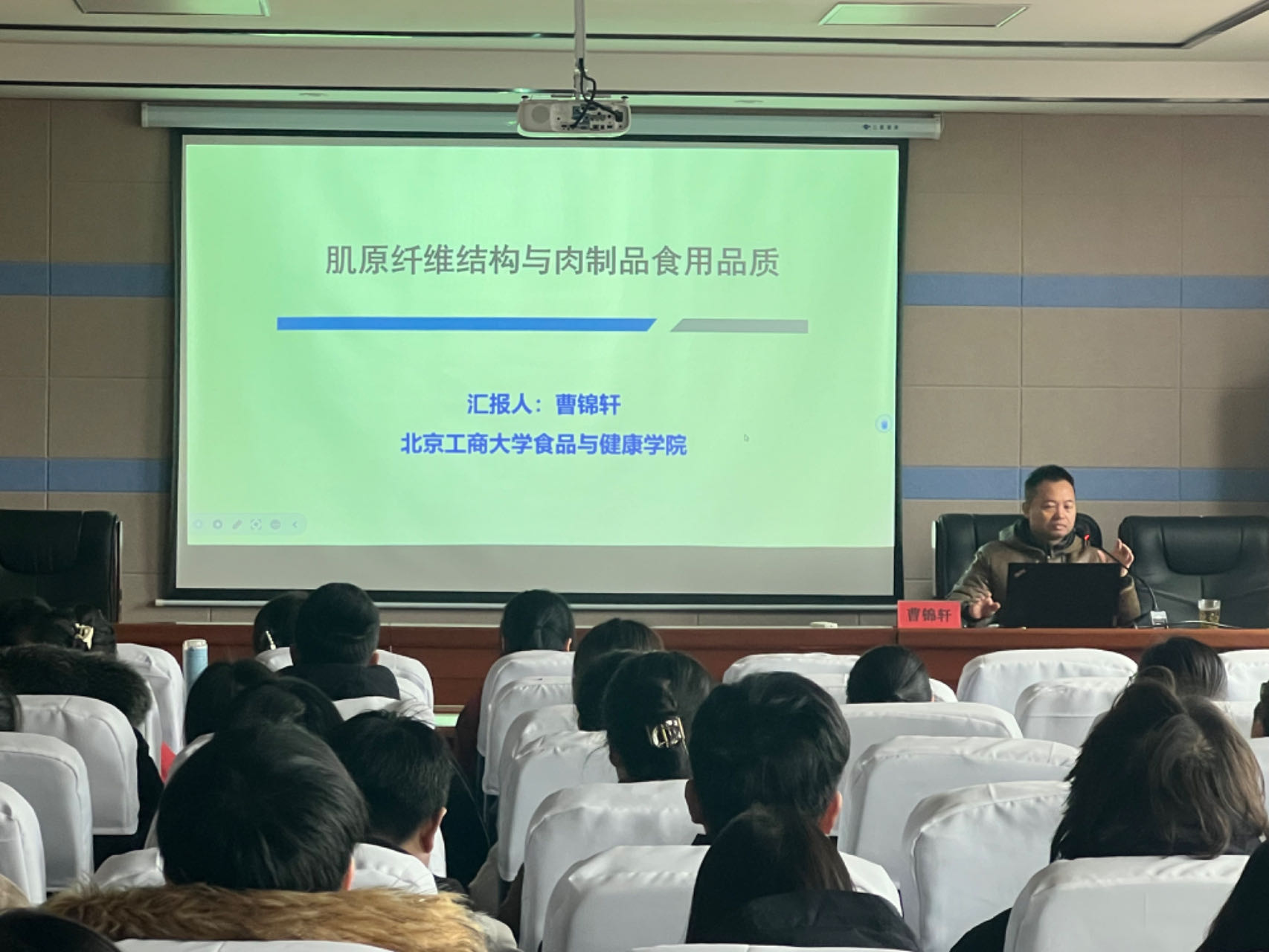 2024年2月27日上午,公司举办的学术报告会在世界足球官网517举行。本次报告会邀请北京工商大学曹锦轩教授作了主题为“肌原纤维结构与肉制品食用品质”的学术报告。公司上百名师生聆听了本次报告会。