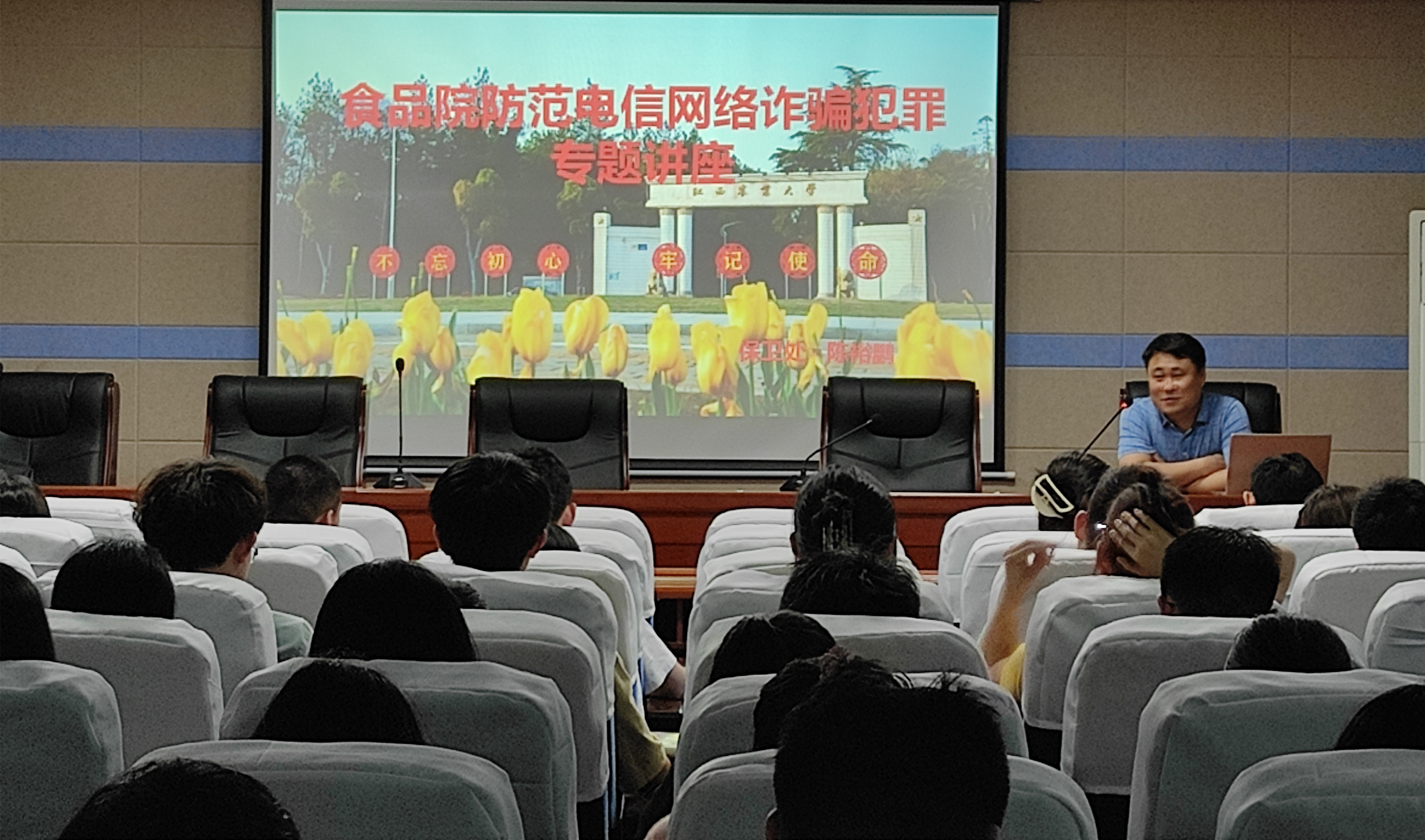 强化网络诈骗教育引导,增强网络安全防范意识。公司展开多样形式的反网络诈骗的专题宣讲活动,让官Q、官微发挥新媒体的宣传优势作用,同时也动员全院老师到反诈案例宣讲中来,并选拔了36名反诈志愿者在班级宣传反诈知识。此外还链接了专家资源,邀请校保卫处副处长陈裕鹏为师生开展反诈骗专题讲座。在形象生动的真实案例、情景模拟与深入浅出的网络诈骗概述讲座宣讲的同时也提出富有针对性、极具实用性的诈骗防范技巧和自我保护措施,呼吁广大学子主动学习网络电信防诈知识,遵守“不听、不信、不转账、不参与”原则,落实转账500元及以上向班主任或者辅导员老师询问报备的制度。