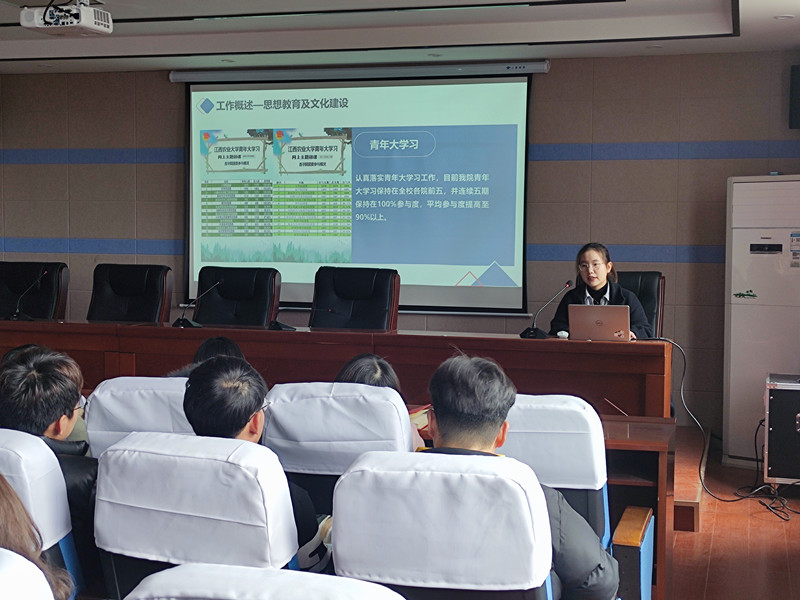 3月9日下午,我院团委、员工会、老员工自我管理与服务中心述职大会在院办5楼报告厅举行,公司党委副书记胡丹出席大会并讲话,院团委、学工办老师担任评委。院团委、员工会、老员工自我管理与服务中心各部门员工负责人,各班班长、团支书共计60余人参加了大会。
