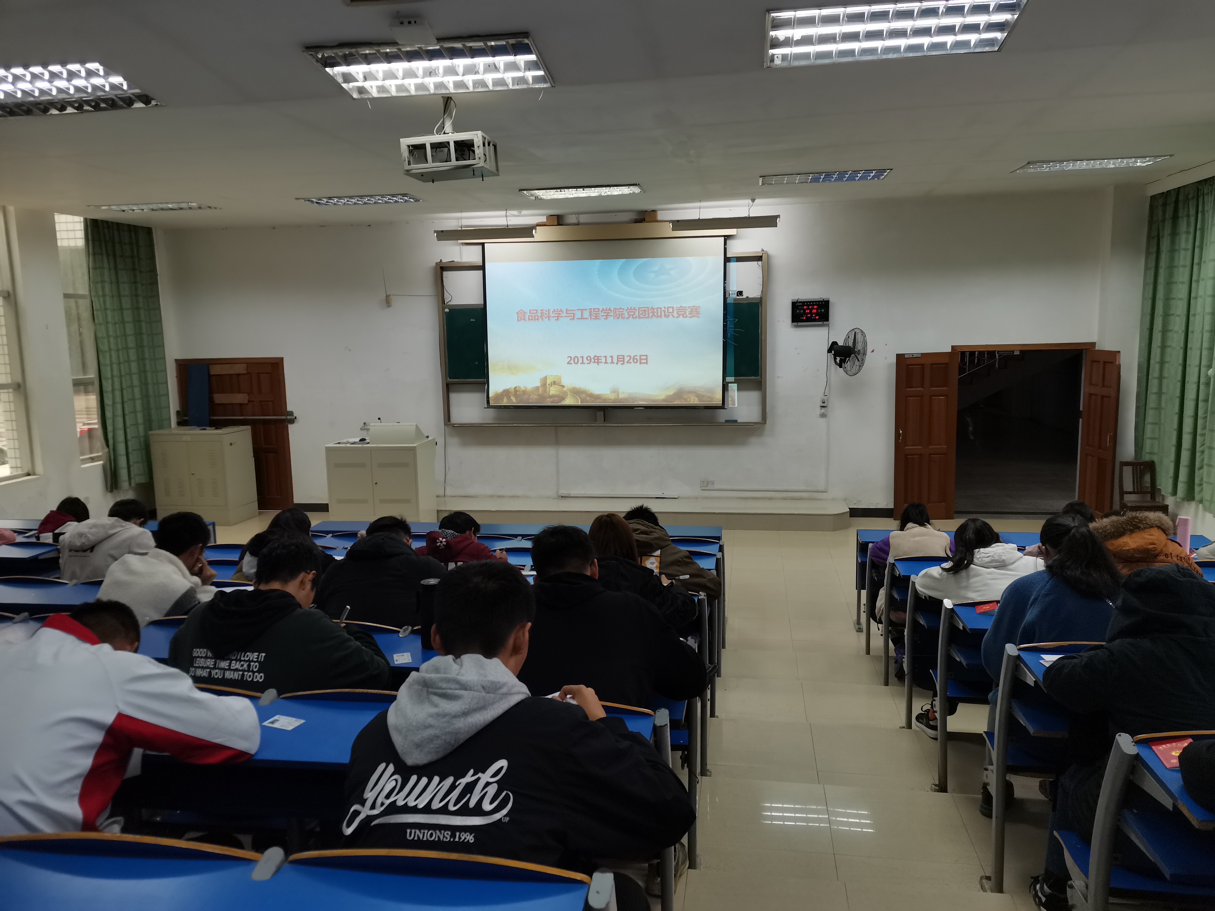 为深入学习贯彻习近平新时代中国特色社会主义思想、党的十九大精神和团的十八大精神,贯彻落实全国全省教育大会和高校思想政治工作会议精神,扎实开展党团基本知识教育,把员工党建和思想政治工作做深做细做实,教育引导广大青年员工坚定共产主义远大理想和中国特色社会主义共同理想,听党话,跟党走,为实现伟大梦想共同奋斗,结合正开展的第二批“不忘初心、牢记使命”主题教育,在新中国成立70周年之际,公司于11月26日下午,在二教106、107教室举办了全院老员工党团知识竞赛。