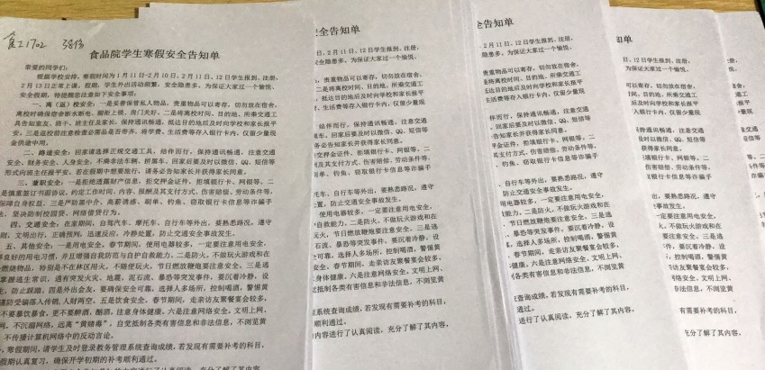 强化教育,增强意识。公司通过召开安全教育主题班会、签订《食品院员工2020寒假安全告知单》等方式,对员工进行专门的假前安全教育,切实提高员工的安全防范意识和自救互救能力。