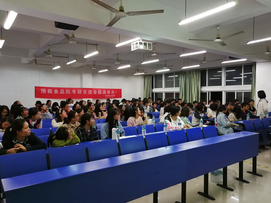 首先,四位学长学姐每人针对一个方面对考研经验进行了交流。他们风趣的语言、清晰的条理赢得了同学们的阵阵掌声。在之后的自由提问环节,他们针对在场同学的疑惑给予解析并给同学们送上祝福,祝福那些想考研的同学们都能考上自己满意的院校。
