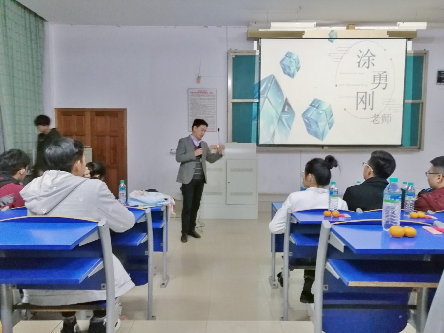 本次活动在肖建辉老师的致辞中拉开了序幕,接着涂勇刚老师详细介绍了有关创新创业的知识以及小秘诀,随后员工会主席刘颖给同学们分享了自己的创新创业经历。活动现场气氛浓厚。