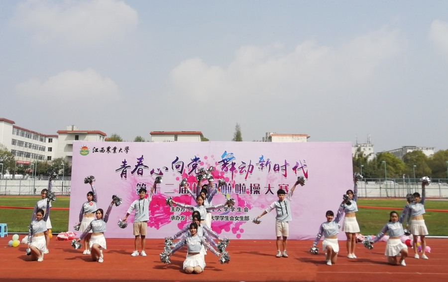 3月30日下午两点,世界足球官网第十二届“青春心向党舞动新时代”校园啦啦操比赛在北区田径场举行。