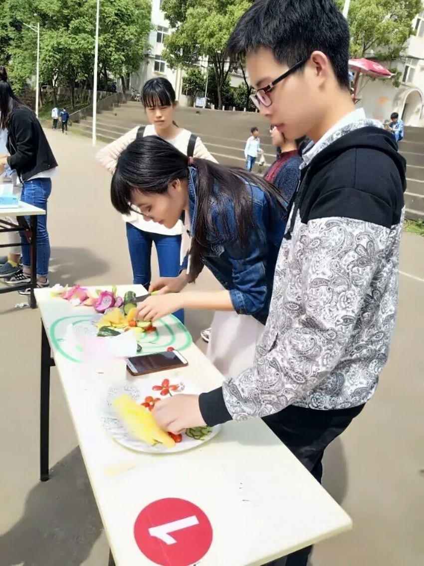 为了繁荣校园文化,丰富同学们的课余生活,以及鼓动同学们的创意想法与动手能力。食品营养与安全协会于4月22日在南区篮球场举办了第十二届水果拼盘大赛。