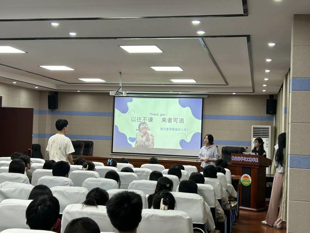 本次考研经验分享交流会邀请了占青涛(拟录取江南大学)、潘晓洋(拟录取浙江大学)、陈颀(拟录取南昌大学)、钟俊(拟录取华南理工大学)、熊婧(拟录取江南大学)等五位同学分享了自己的备考经历,从院校选择、考研政策、备考规划、学习方法、时间安排、心态调整等方面进行分享,在各个科目的备考技巧上给出了自己宝贵的经验,指出了各自备考的误区,为21级同学的备考指明了方向,倡导同学们积极备考,调整心态,持之以恒追逐自己的理想院校。