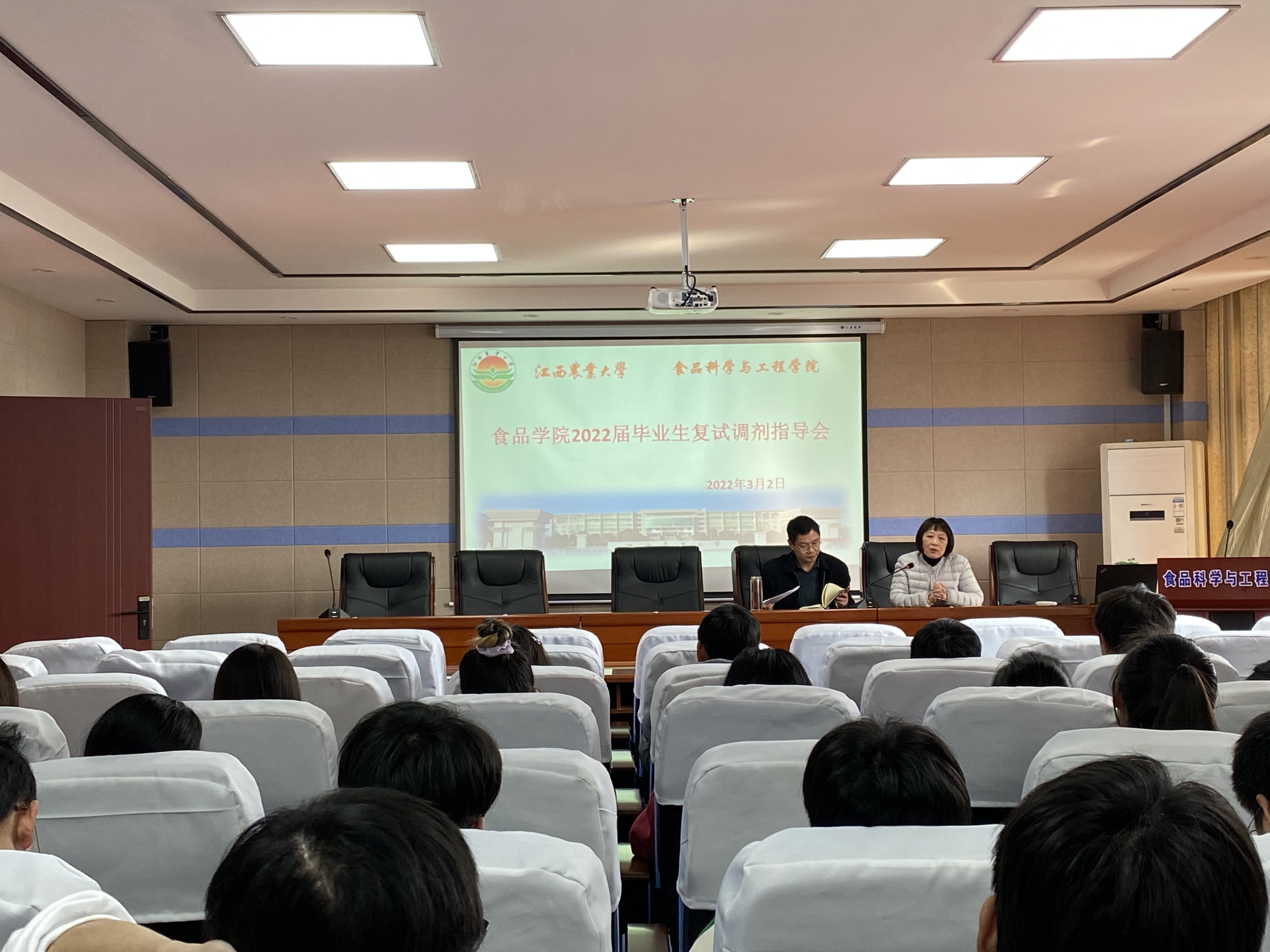 王文君系统分析了22年研究生招生考试形势和食品相关专业开设院校情况,鼓励学院同学调整好心态积极准备复试,他对考研同学的复试调剂工作提出三点建议:一是同学们要用积极心态去应对由于疫情原因带来的各种挑战,变被动为主动,化“危”为“机”,主动适应线上复试的新形势、新要求,精心准备,发挥自身优势、扬长避短,力争复试取得理想成绩;二是需要调剂的同学要通过多渠道密切关注各院校调剂信息,精准对接调剂院校,提高匹配度;三是毕业生能够积极主动向班主任、辅导员、专业教师寻求帮助,学院教职工会倾力帮助、科学指导,帮助毕业生取得最佳成绩。