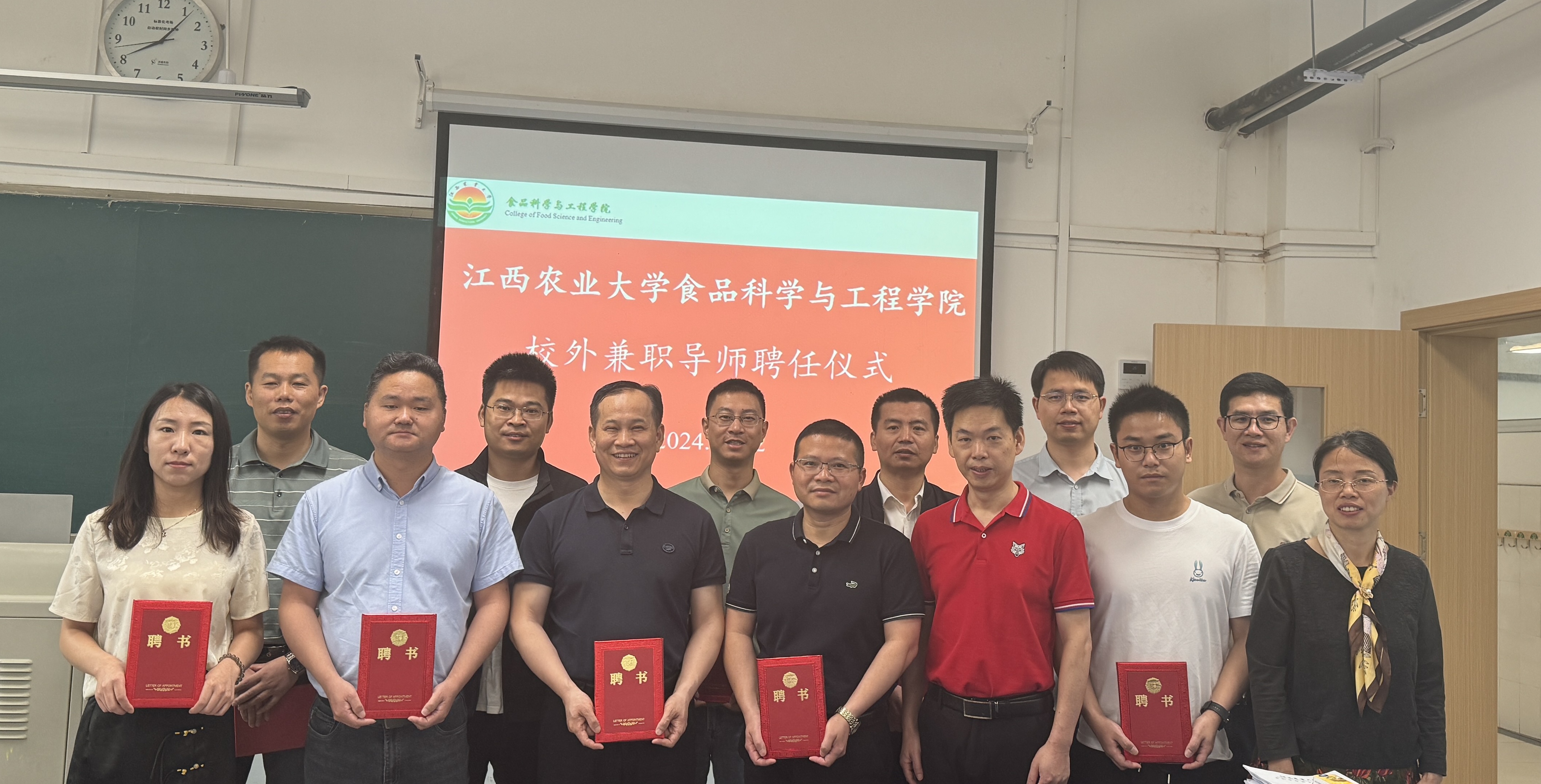5月12日上午,公司于第五教学楼117为校外兼职导师举行聘任仪式,学院经理涂勇刚教授及各教研室主任参加仪式。10位受聘导师分别来自益海嘉里(南昌)粮油食品有限公司、南昌双汇食品有限公司、江西阳光乳业股份有限公司、江西煌上煌集团食品股份有限公司、甘源食品股份有限公司、江中食疗科技有限公司、南昌伦佧科技有限公司、南昌海关和江西省食品检验检测研究院等企事业单位。