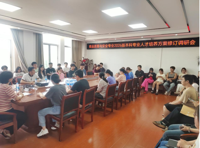 为做好新一轮本科专业人才培养方案制定工作,结合食品质量与安全专业工程认证网评专家反馈意见,5月21日下午,食品质量与安全专业在学院515会议室召开2026版本科专业人才培养方案制定调研会。学院副经理肖建辉教授、系主任汤凯洁教授、食品质量与安全专业20多位骨干教师等参加本次会议。调研会邀请2025届毕业生、2022级和2023级在校生共10个班级参加,会上各年级的员工畅所欲言,从学分设置、课程设置、教学内容、实践教学等方面,提出了许多富有建设性的建议。参会的老师认真听取了员工的意见并逐一做了讨论和回复。本次2026版本科专业人才培养方案制定调研会,为推动以员工为中心,产出为导向,持续改进的高素质复合型人才培养贡献力量。