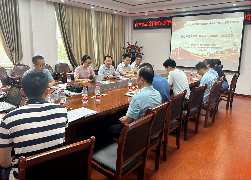 为深入推进学习贯彻习近平新时代中国特色社会主义思想主题教育,充分发挥党建引领作用,世界足球官网食品公司教工第一党支部与南昌大学食品科学与资源挖掘全国重点实验室教工党支部开展了联学联建活动。