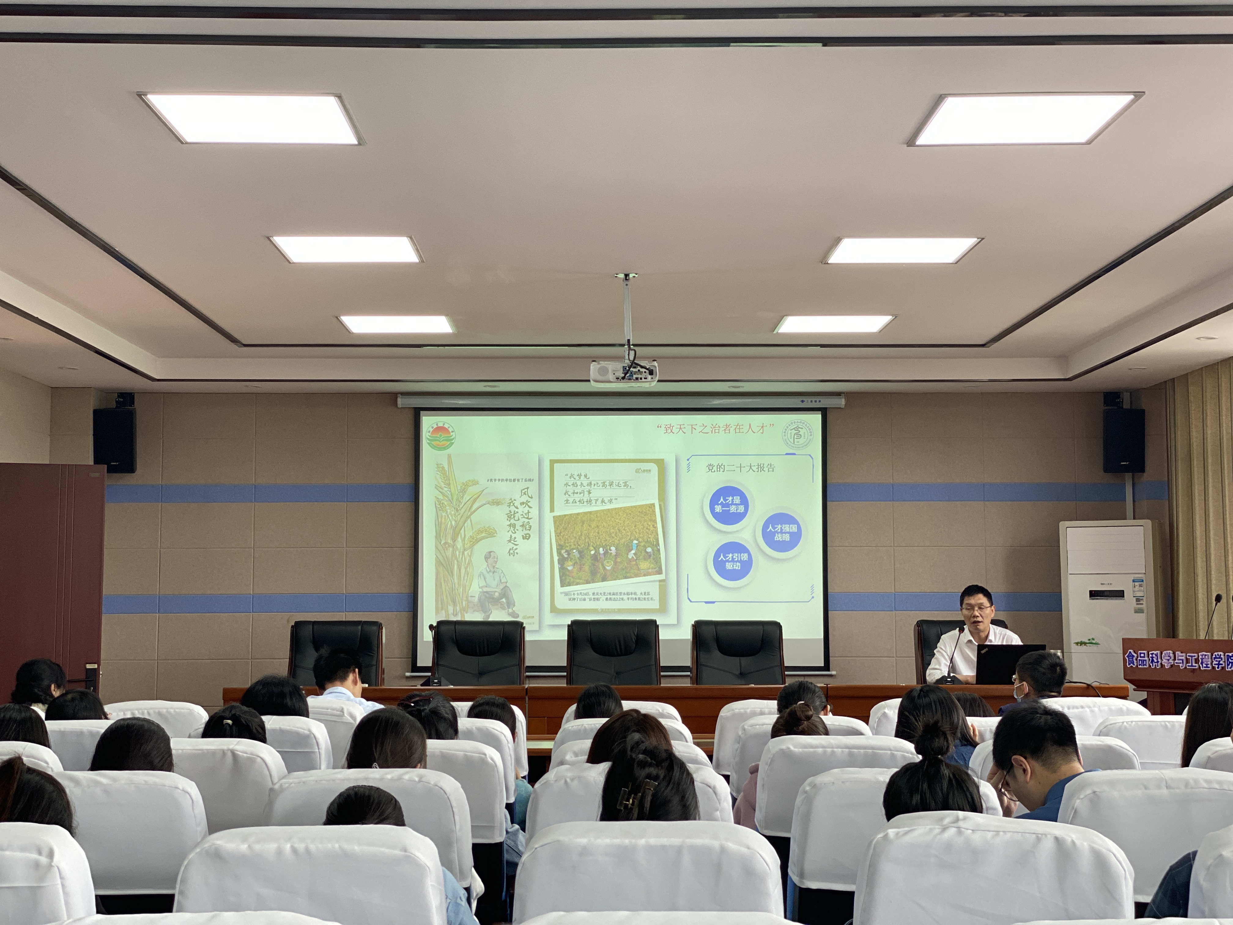 王文君以《深入学习贯彻党的二十大精神,贯彻落实立德树人根本任务,为推进有特色高水平大学建设贡献食品人的力量》为题,带领学院师生深入学习领会习近平总书记关于高等教育的重要论述和开展好学习贯彻习近平新时代中国特色社会主义思想主题教育的重大意义和目标要求,学院全体师生党员要牢牢把握“学思想、强党性、重实践、建新功”的总要求,紧紧锚定目标任务,全面落实重点措施,确保圆满完成主题教育的各项任务。