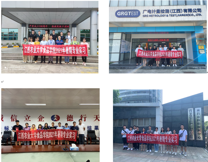 202173日至828日,公司组织食工、食安两专业共80余名同学赴江西奕方农业科技有限公司、南昌双汇食品有限公司、益海嘉里(南昌)粮油食品有限公司、江西煌上煌集团食品股份有限公司、广电计量检测(江西)有限公司等11个单位进行暑期专业实习。