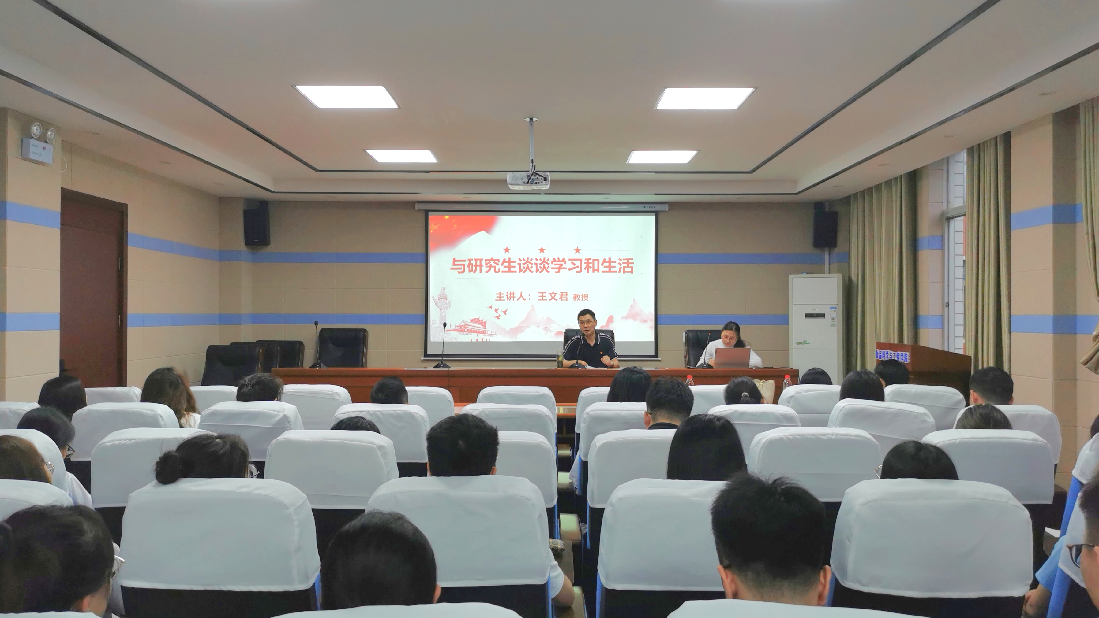 公司党委委员、经理王文君从新中国成立以来,中国共产党统筹协调,带领一批默默奉献的科研工作者在各科研领域取得的巨大突破为切入点,面向学院研究生谈思想、谈感悟、谈研究生期间的规划,告诫学院全体研究生要不忘初心、牢记使命,做科研要有“板凳甘坐十年冷”的精神。