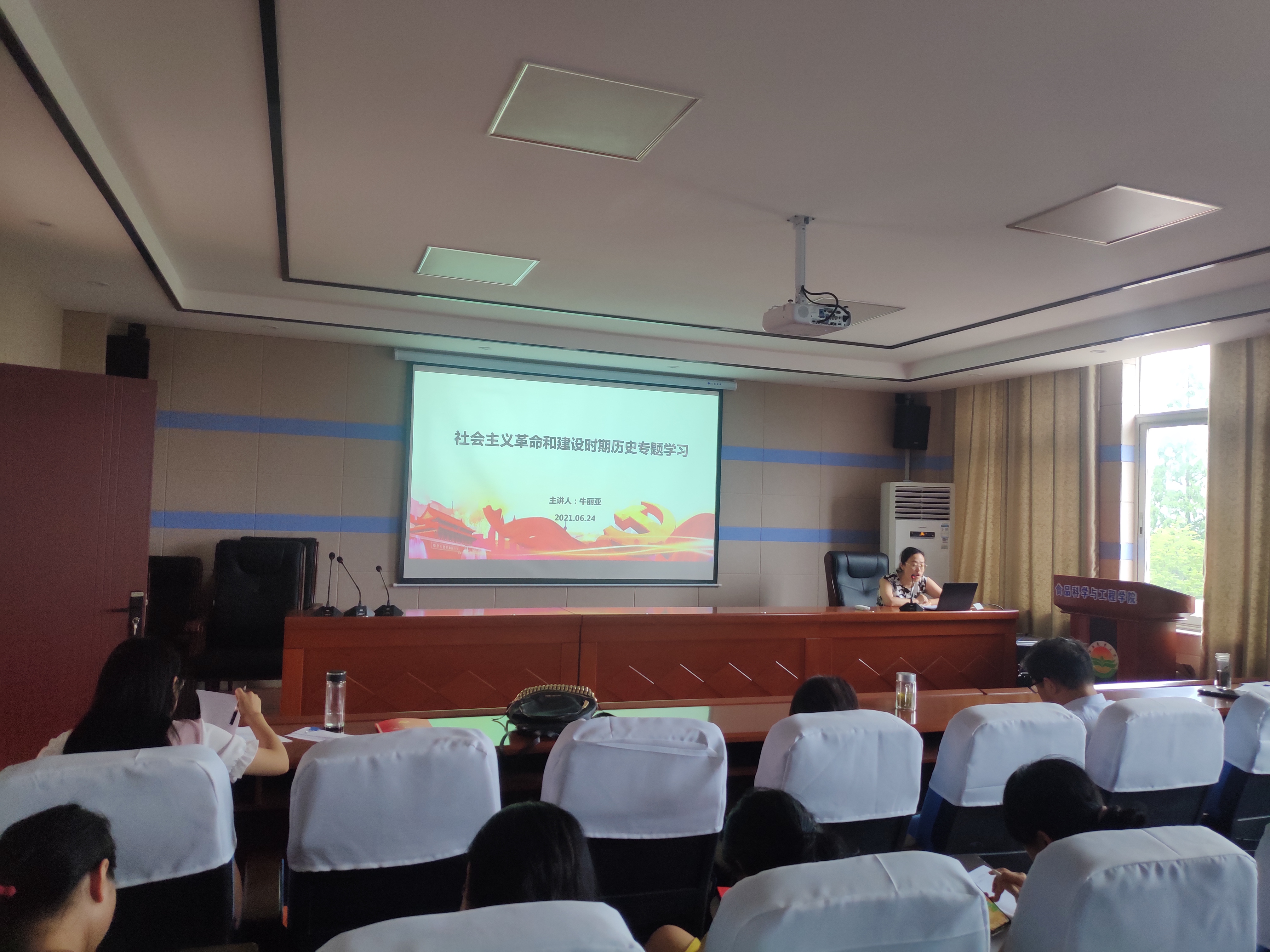 公司教工党支部书记牛丽亚、研究生党支部书记朱丽琴、员工支部书记黄月胜分别面向所在支部上党课。