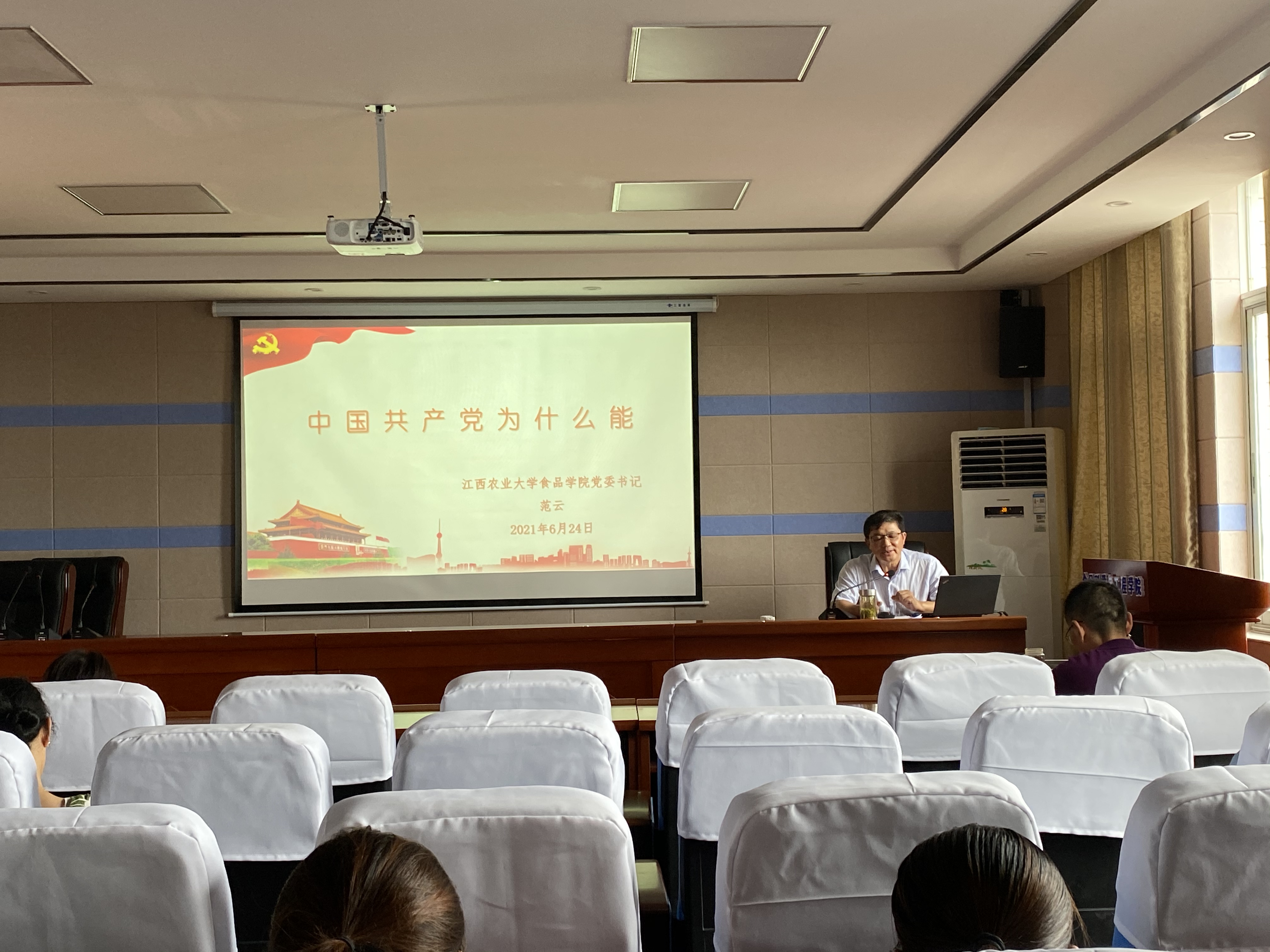 公司党委书记范云以“中国共产党为什么能”为主题,带领学院师生系统回顾了1840年以来的中国历史,解读了中国共产党成立时的国际国内环境,用自身的亲身经历,尤其是在新冠疫情中以习近平同志为核心的党中央团结带领全国人民取得抗击疫情阶段性胜利的事实,阐述了在中国共产党的领导下,新中国从“站起来”到“富起来”,到大步迈向“强起来”体现。