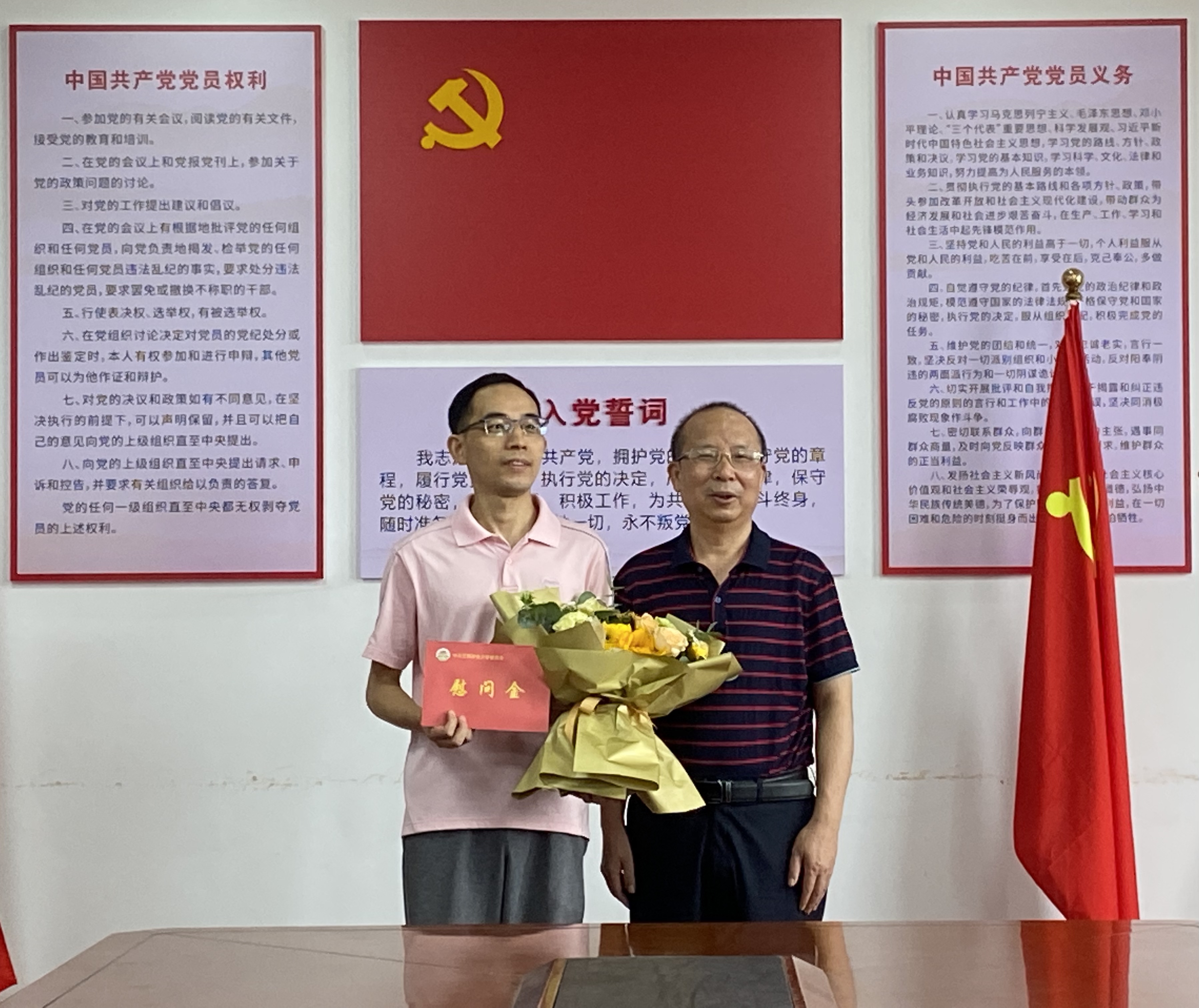 9月7日上午,在37个教师节即将到来之际,副董事长曾志将党办校办、人事处负责人陪同下来公司慰问了优秀教师代表黄月胜。