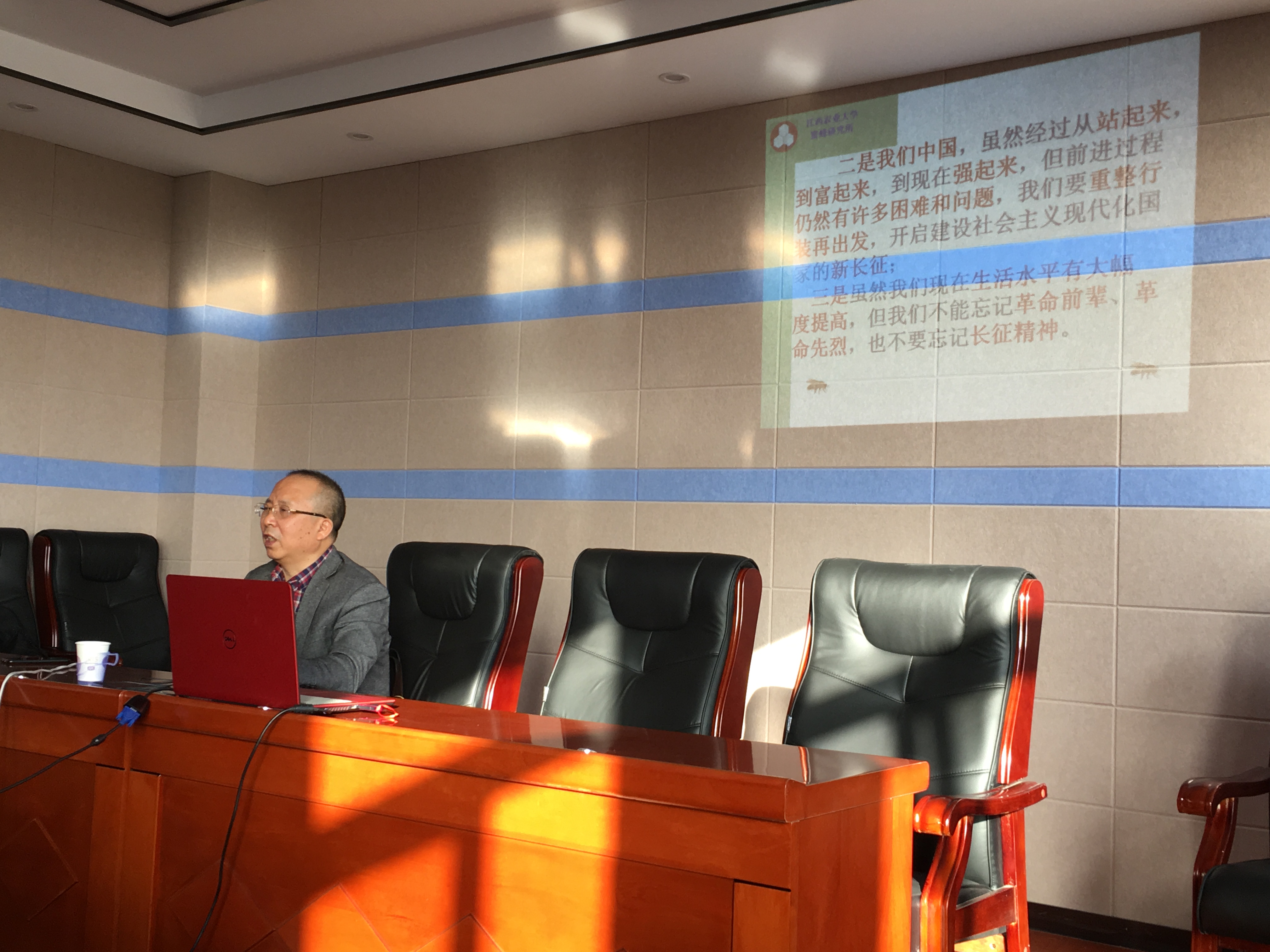 曾志将同志结合“不忘初心、牢记使命”主题教育的开展背景和自身的学习体会,讲授了当代老员工的初心与使命,同时介绍了自身求学经历以及中华人民共和国成立以来,尤其是改革开放后国家发生的巨大变化,告诫在座同学珍惜来之不易的学习环境。“青年是整个社会力量中最积极、最有生气的力量,国家的希望在青年,民族的未来在青年。”曾志将同志用习近平总书记在纪念五四运动100周年大会上的讲话,勉励学院员工,全面提升自我,把自我价值的实现与国家、社会的需求结合起来,与中华民族伟大复兴的中国梦结合起来,成长为国家、社会、家长满意的人才。课上曾志将同志还介绍了国家对研究生的培养政策,号召员工积极主动学习,在条件允许的情况下提升自我能力。