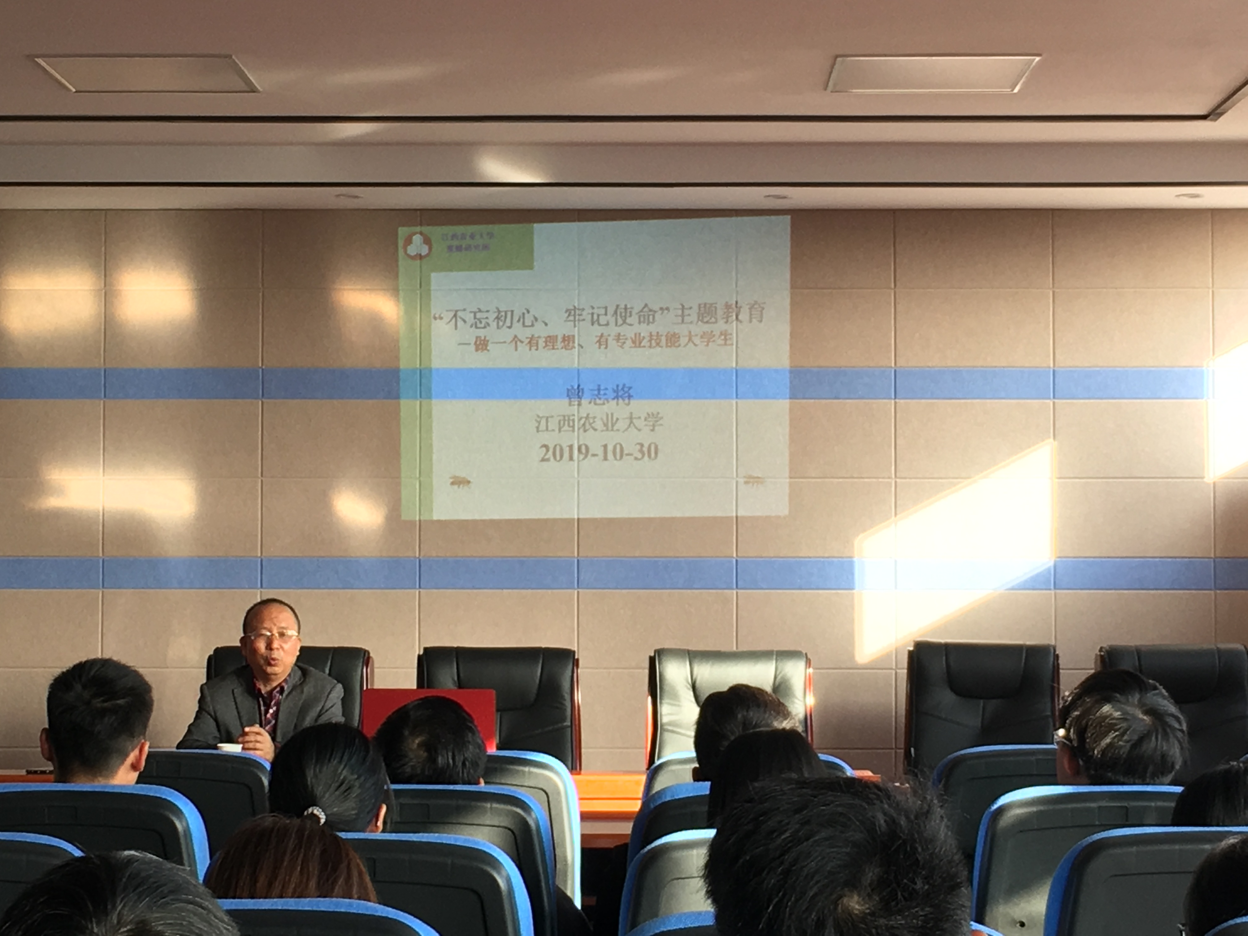 10月30日下午,副董事长曾志将赴公司5楼科报厅,深入联系班级食品质量与安全1903班,为班级同学以及学院员工党员以“做一个有理想,有专业技能的老员工”为题上思政课,课程由公司党委副书记胡丹同志主持。