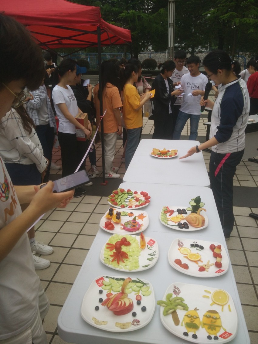 每年5月的第三周是“全民营养周”,514日,按照省卫生健康委药政食品处的统一部署,江西省营养学会主办、学院承办的“合理膳食,天天蔬果,健康你我”主题全民营养周活动在老员工文化广场举办。活动在青年老员工带来的全民营养操中拉开了序幕,随后,公司经理王文君教授围绕年度主题,对中国居民膳食指南进行解读,倡导健康合理的饮食模式,为现场观众进行了营养健康知识科普,志愿者现场发放营养知识宣传册200余份。在果蔬拼盘大赛环节,经过初赛筛选进入决赛的6组选手在30分钟内将准备好的果蔬进行创意拼盘展示,并对寓意及营养搭配进行讲解,由活动现场随机60名观众投票决定名次。在选手紧张拼盘过程中进行了营养知识有奖竞答环节,观众积极参与其中,共发出60余组奖品,将比赛推向高潮。
