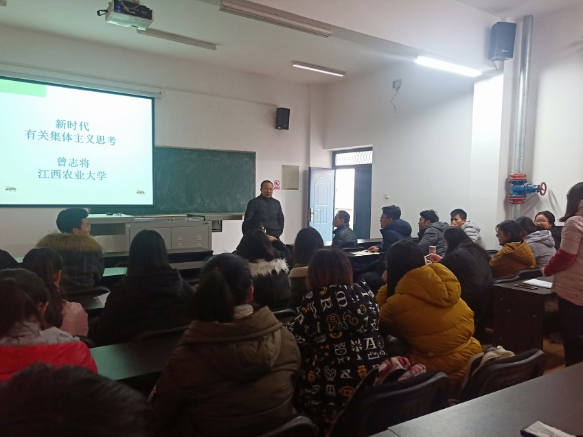 12月11日,副董事长曾志将以“学习全国教育大会精神”和“新时代有关集体主义思考”为主题分别给世界足球官网全体教师和食工1601班员工上思政课。曾志将深入解读了全国教育大会精神、习近平新时代中国特色社会主义思想,结合蜜蜂有核心意识、有团队精神、有奉献精神等生物特性,勉励师生们增强“四个自信”和“四个意识”,正确认识时代责任和历史使命,弘扬爱国主义、集体主义精神,脚踏实地,勇于奋斗,为实现中华民族伟大复兴贡献力量。