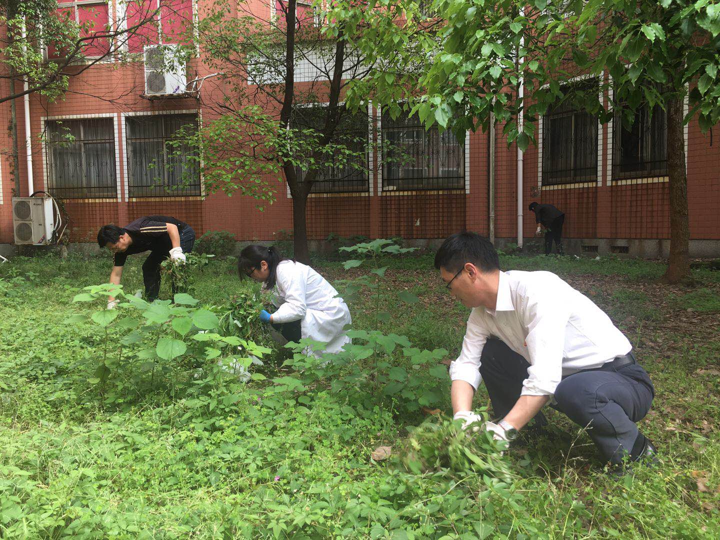 整治活动中,每位教职工分工明确,井然有序,利用笤帚、铁锹等清洁工具,清理杂草和白色垃圾,净化校园环境,创造美丽生活环境。