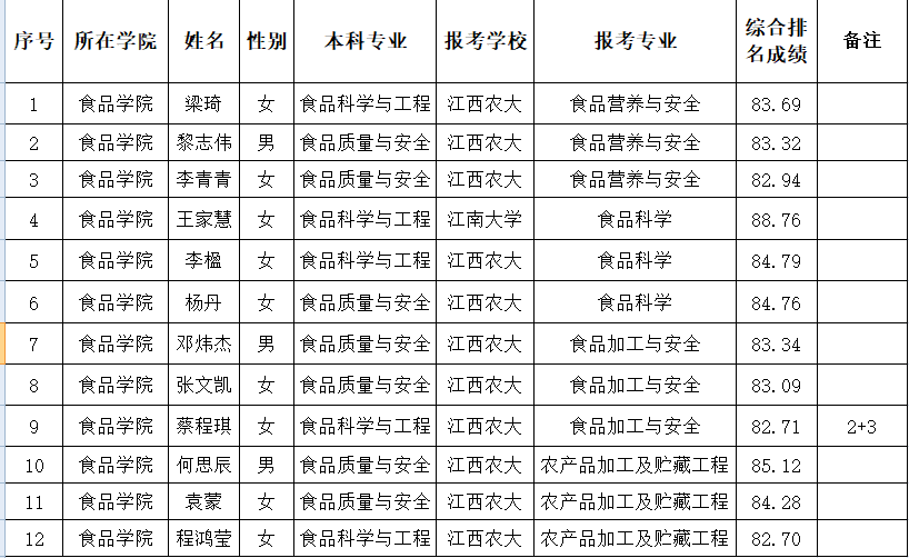 根据教育部及学校《世界足球官网推荐优秀应届本科毕业生免试攻读硕士学位研究生实施办法(修订)》(赣农大发【2020】号)文件精神,经员工本人申请,学院推免遴选小组资格审查,学院推免生专家组鉴定以及答辩,拟推荐以下12名同学免试攻读硕士研究生现将推荐名单公示如下:
